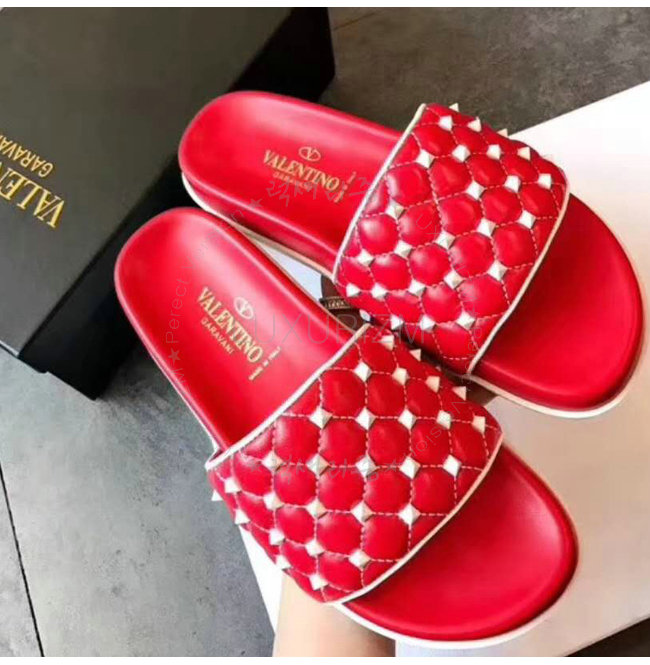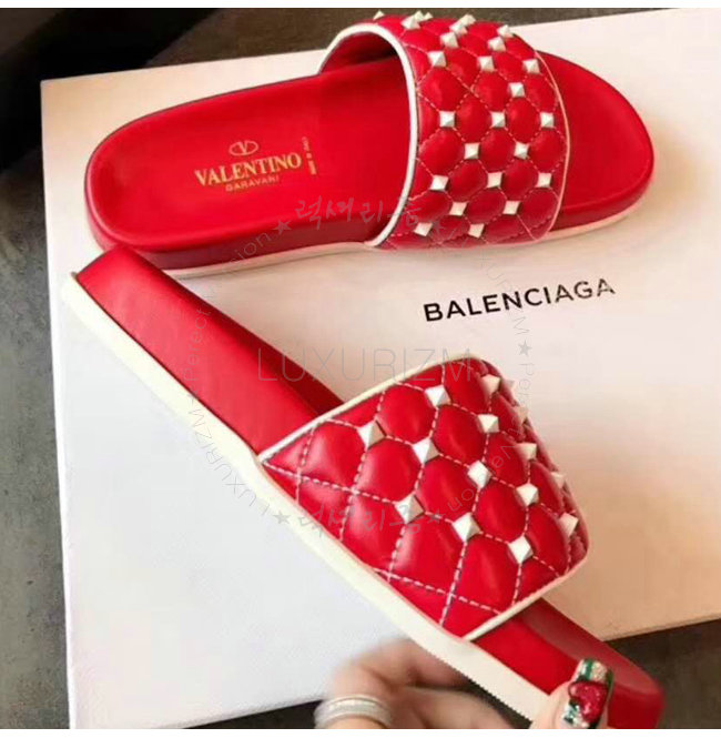 VALENTINO-PW2S0F01 발렌티노 레드 프리 락스터드 스파이크 슬라이드 샌들