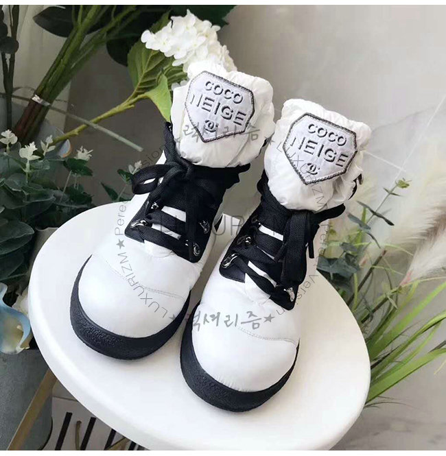 CHANEL-G34082 샤넬 화이트 나일론 페브릭 쇼트 부츠