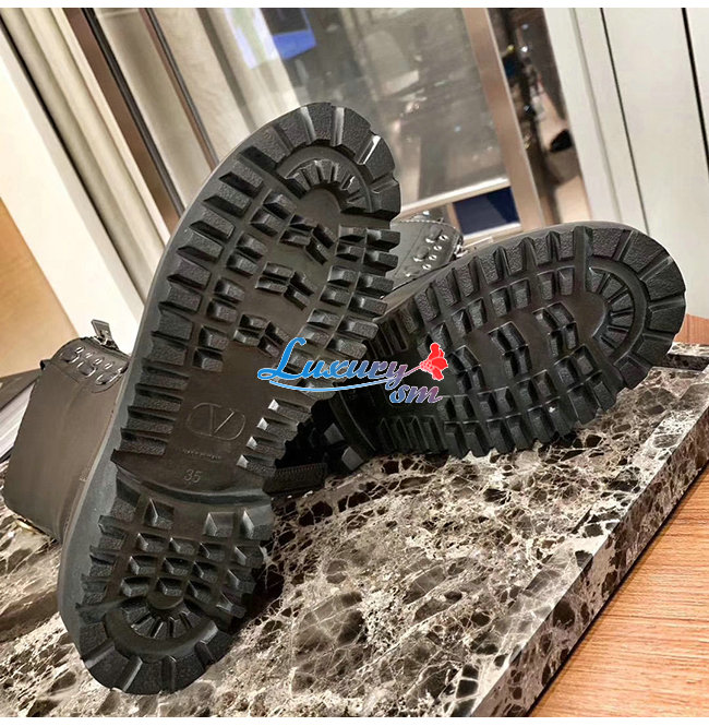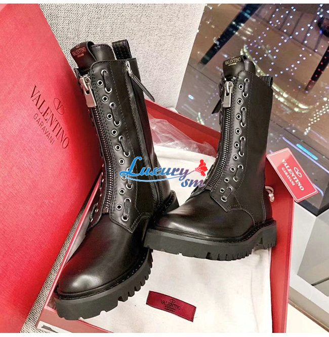 VALENTINO-SW0S0S 발렌티노 블랙 송아지 가죽 링 디테일 컴뱃 부츠