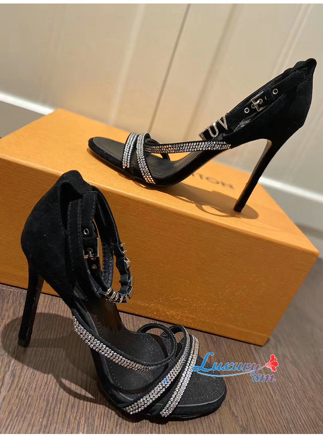LOUIS VUITTON-1A5L30 루이비통 블랙 스웨이드 염소 가죽 콜 백 샌들