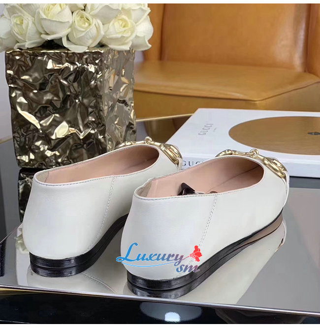 GUCCI-621161 9050 구찌 화이트 가죽 홀스빗 플랫 슈즈