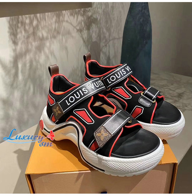 LOUIS VUITTON-1A7U5P 루이비통 블랙/레드 테크니컬 패브릭 LV 아치라이트 스포티 샌들