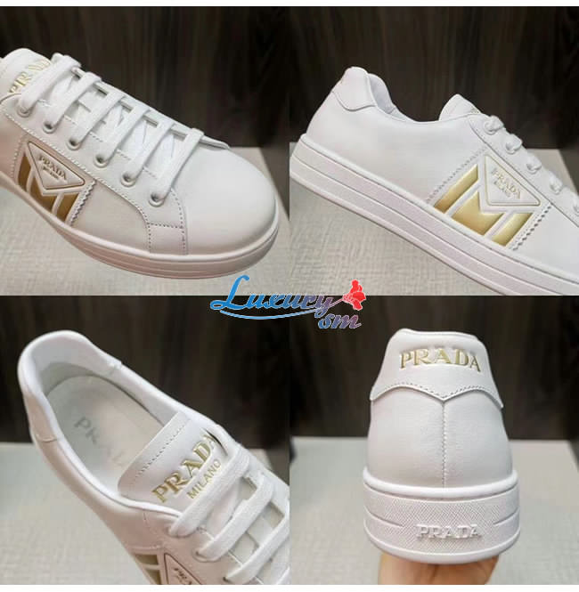 [스페셜오더]PRADA-4E3544 프라다 화이트/골드 송아지 가죽 스크린 프린트 뉴 에비뉴 스니커즈