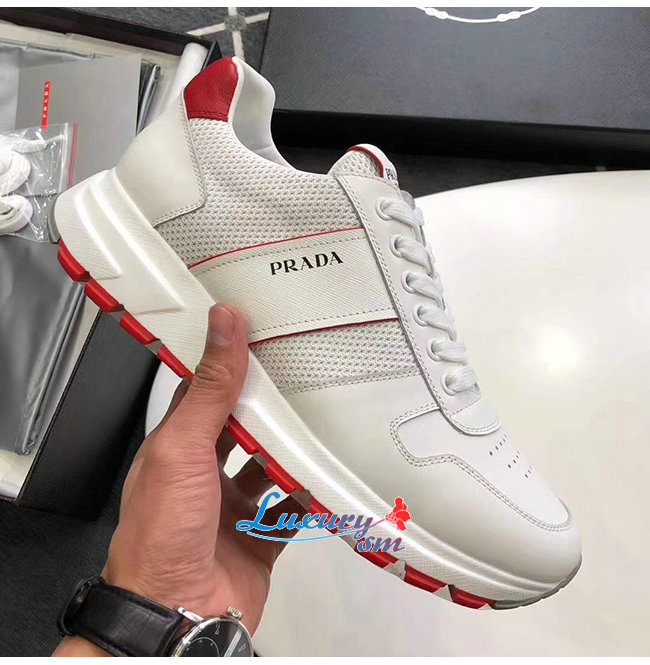 PRADA-4E3571 프라다 화이트/레드 송아지 가죽 Prada PRAX 01 스니커즈