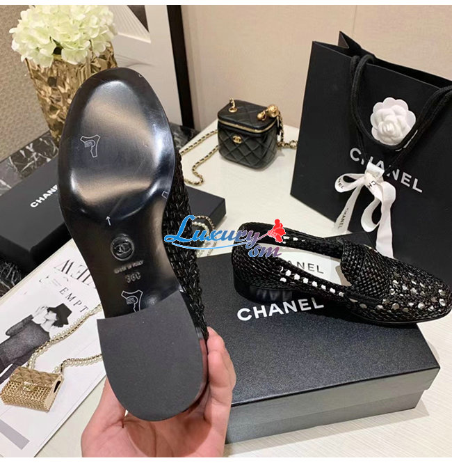 CHANEL-G37403 샤넬 블랙 유광 브레이드 고트스킨 로퍼 여성용