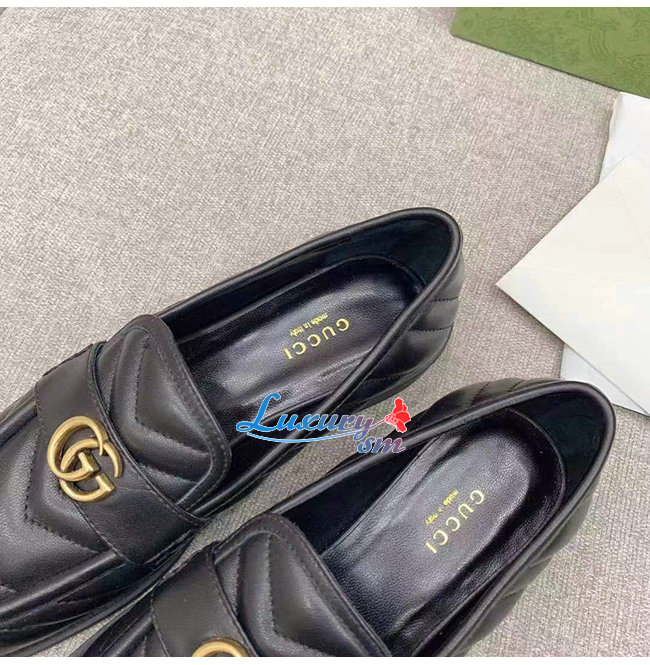 GUCCI-670399 1000 구찌 블랙 마틀라세 가죽 더블 G 로퍼
