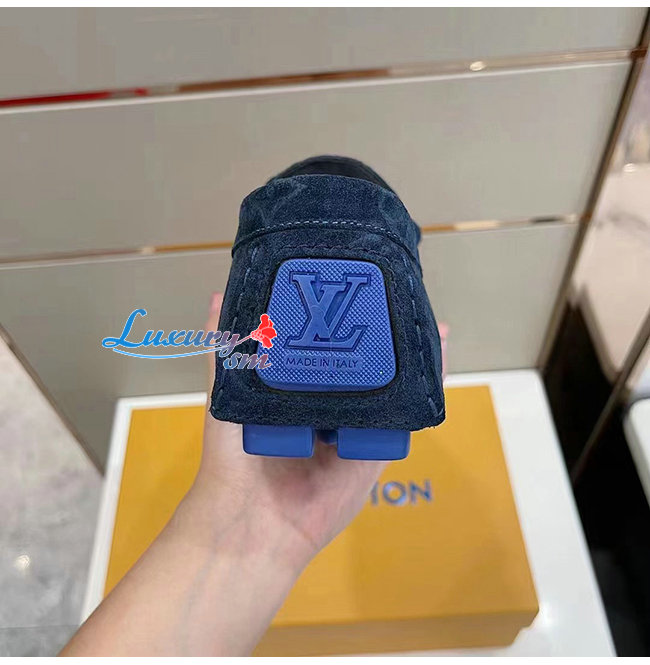 LOUIS VUITTON-1AAF1C 루이비통 네이비 모노그램 스웨이드 LV 드라이버 모카신