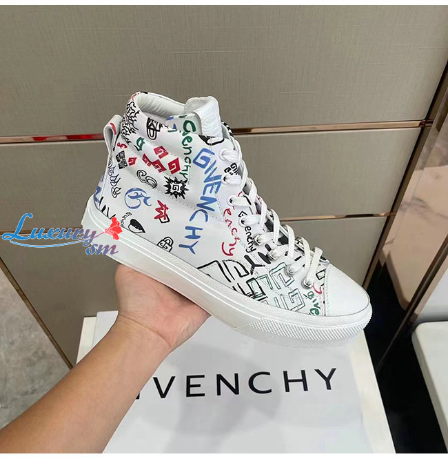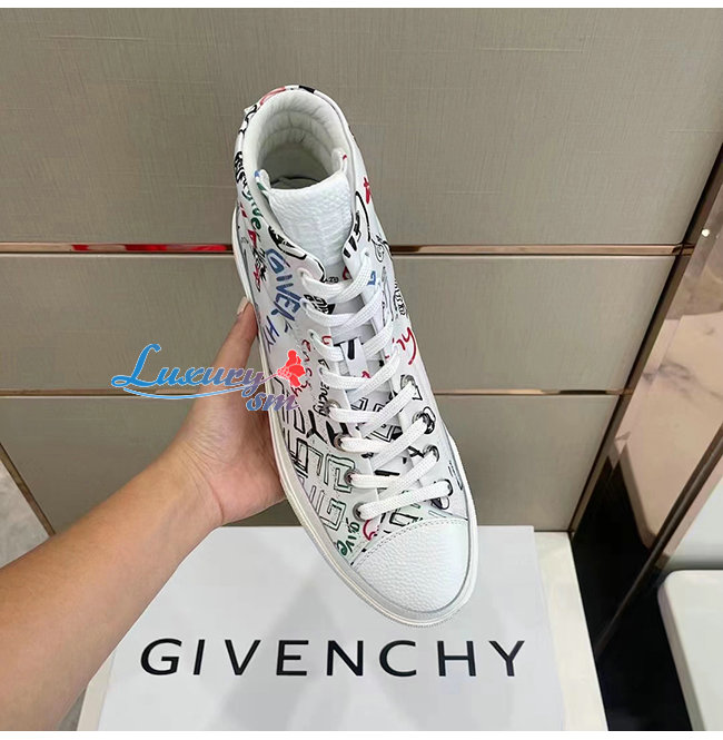 GIVENCHY-BH005LH1 지방시 레드 리퍼 프린트 가죽 시티 하이탑 스니커즈 남성용