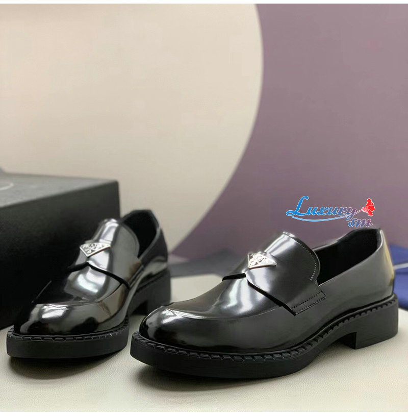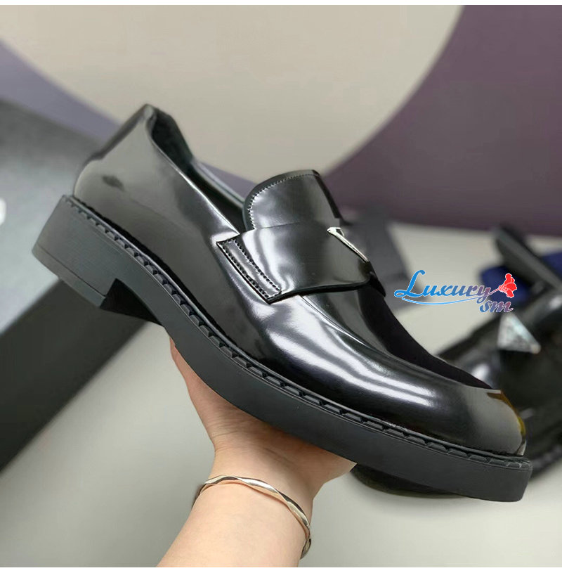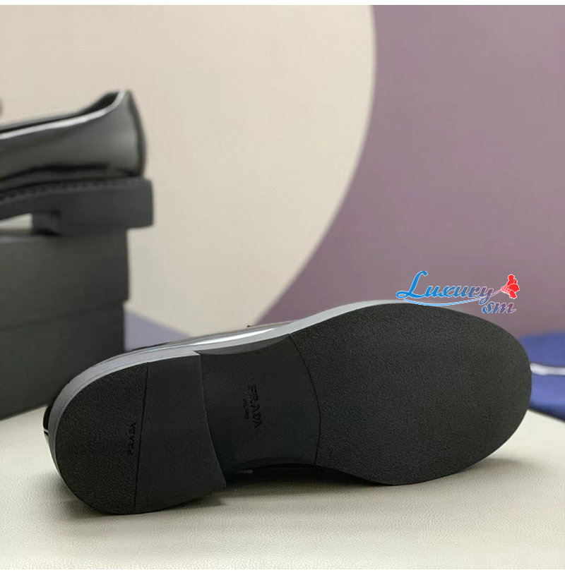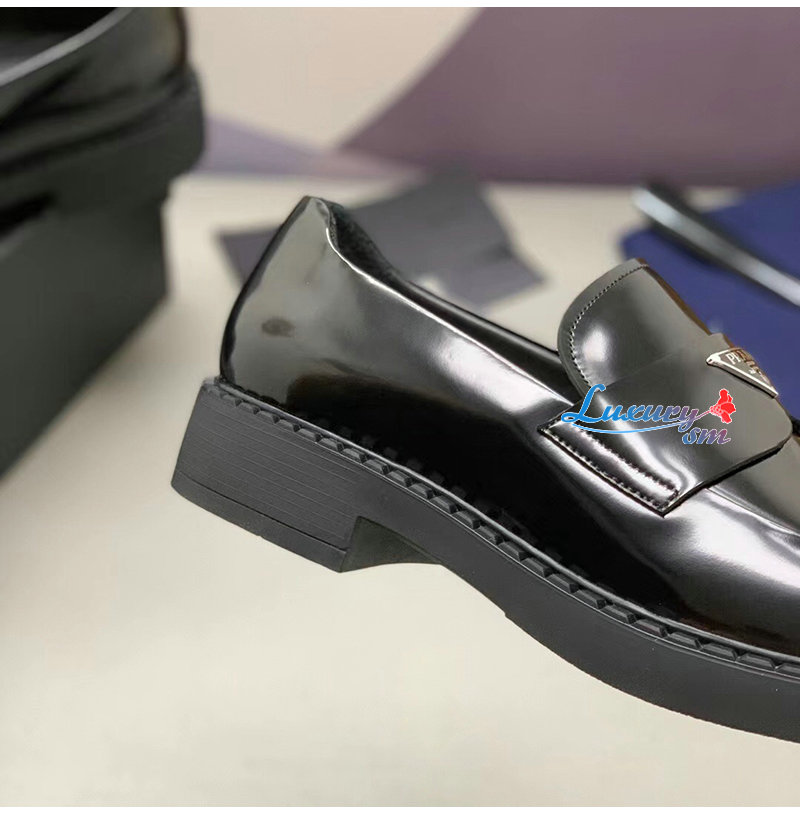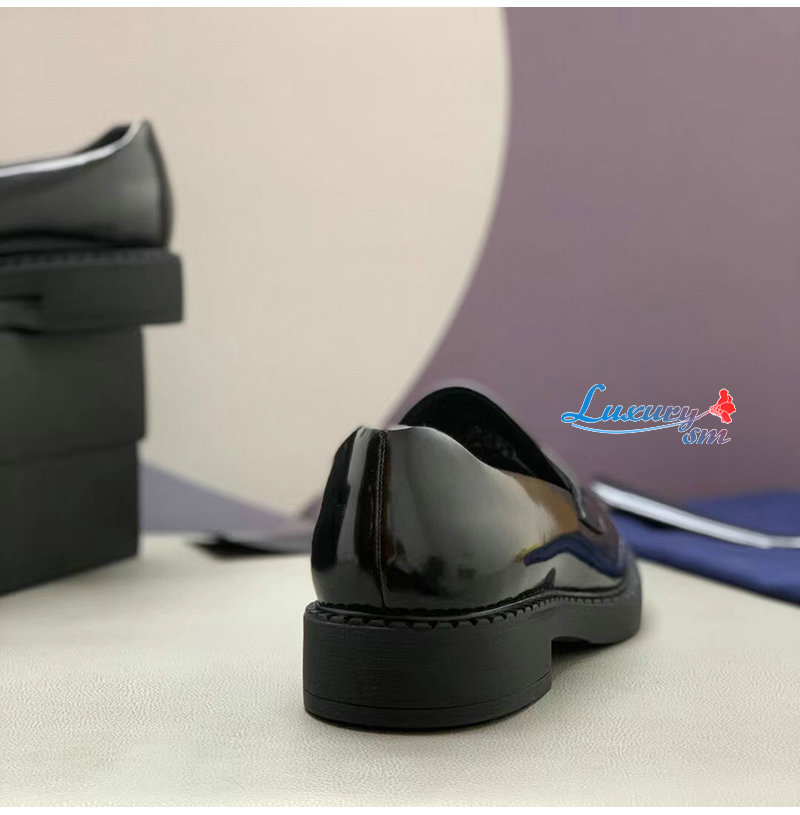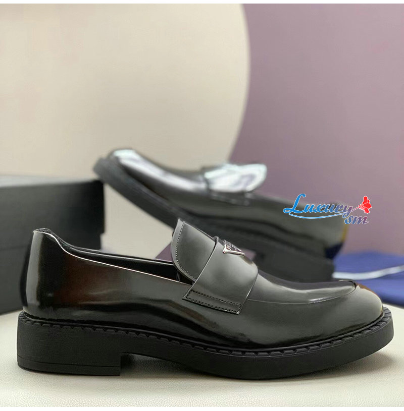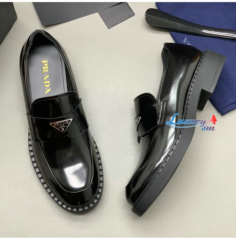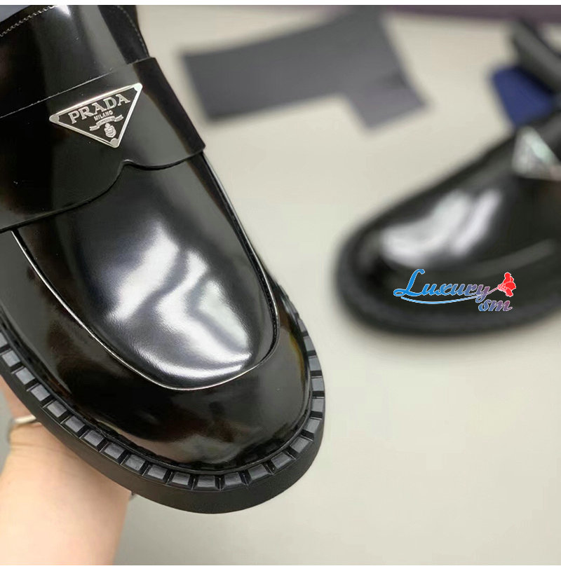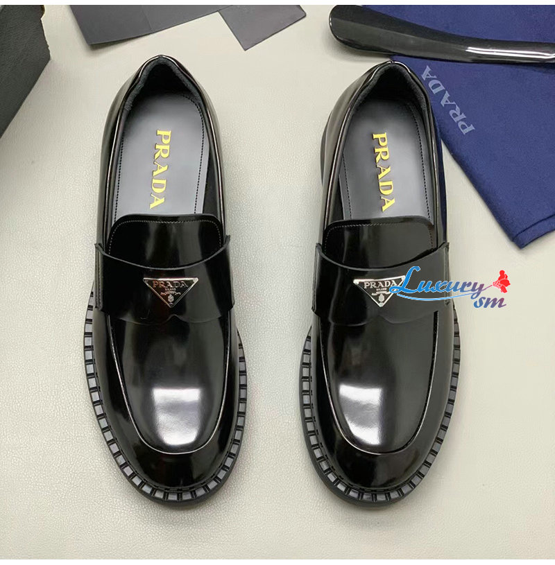 PRADA-2DE127 프라다 블랙 초콜릿 블러시드 가죽 로퍼 남성용