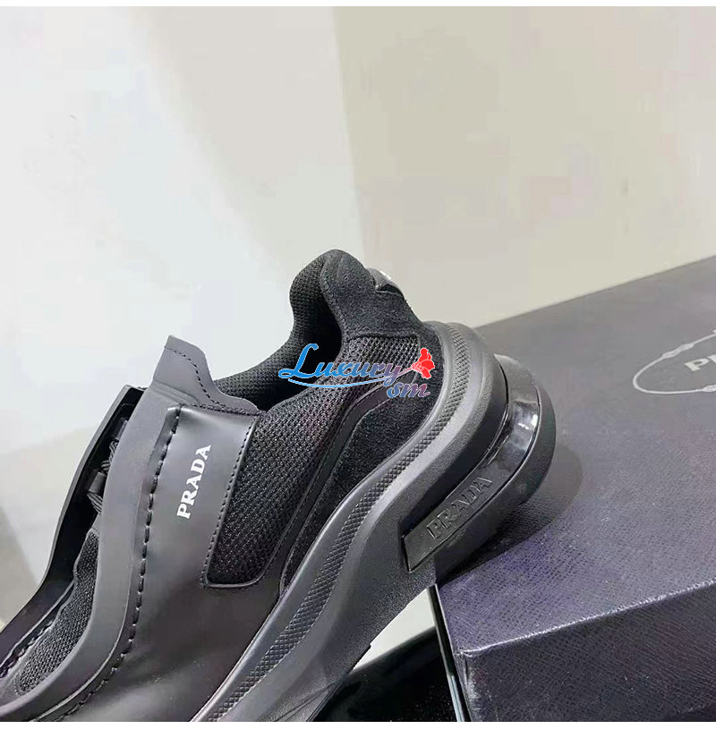 PRADA-2EG424 프라다 블랙 브러시드 가죽 스니커즈 남성용