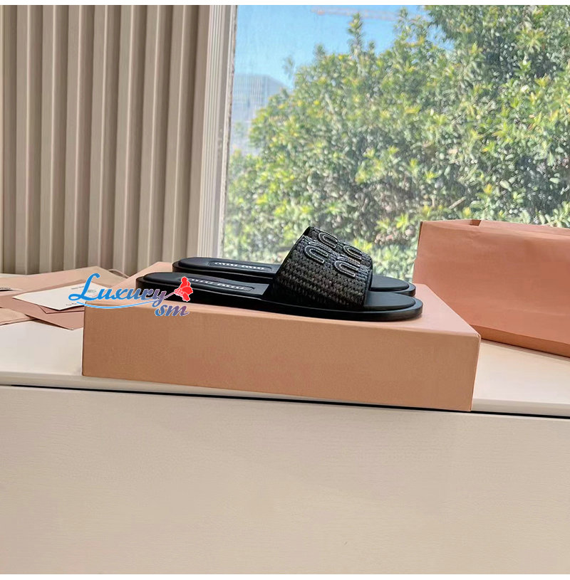 MIUMIU-5XX644 미우미우 내추럴 라피아 우븐 패브릭 슬라이드 여성용