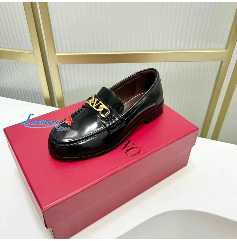 VALENTINO-1W2S0E 발렌티노 블랙 브이로고 체인 송아지 가죽 로퍼 여성용