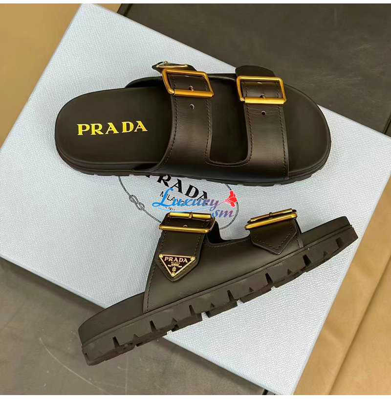PRADA-1XX692 프라다 블랙 가죽 스트랩 슬라