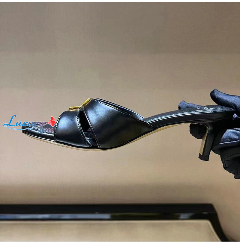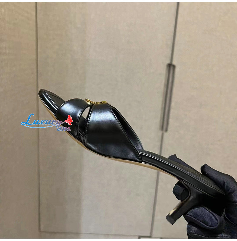 FENDI-8R8538 펜디 블랙 가죽 펜디 F폴드 미디엄 힐 샌들