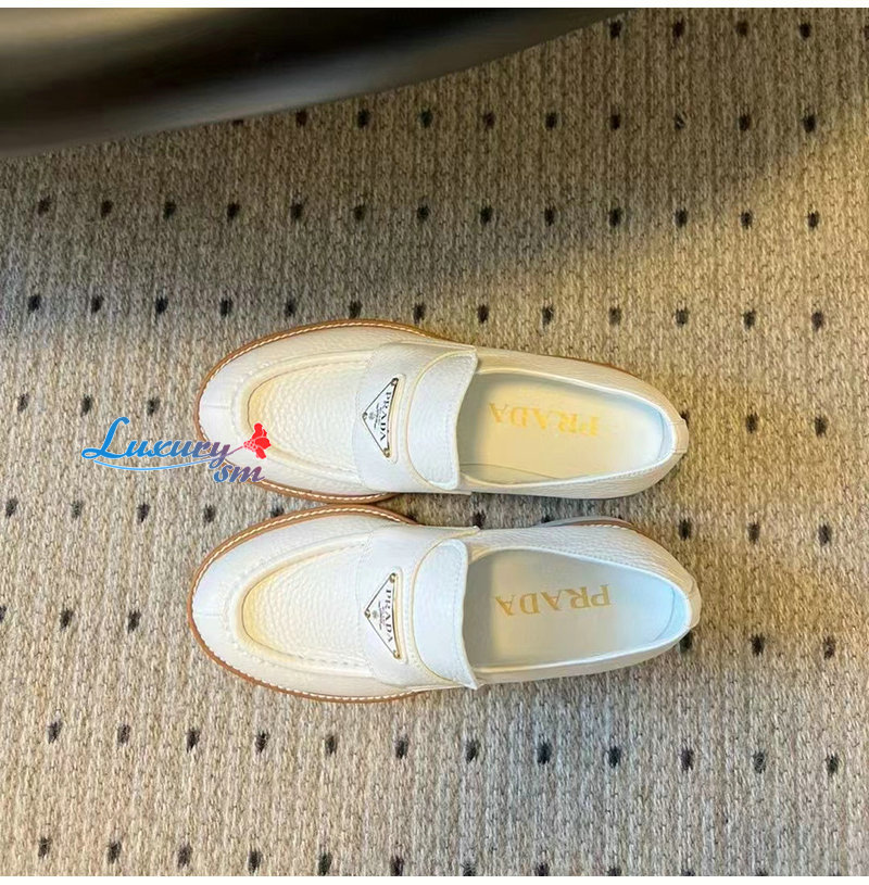 PRADA-1D442N 프라다 아이보리 가죽 트라이앵글 로고 로퍼 여성용