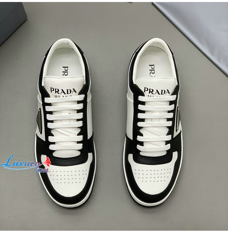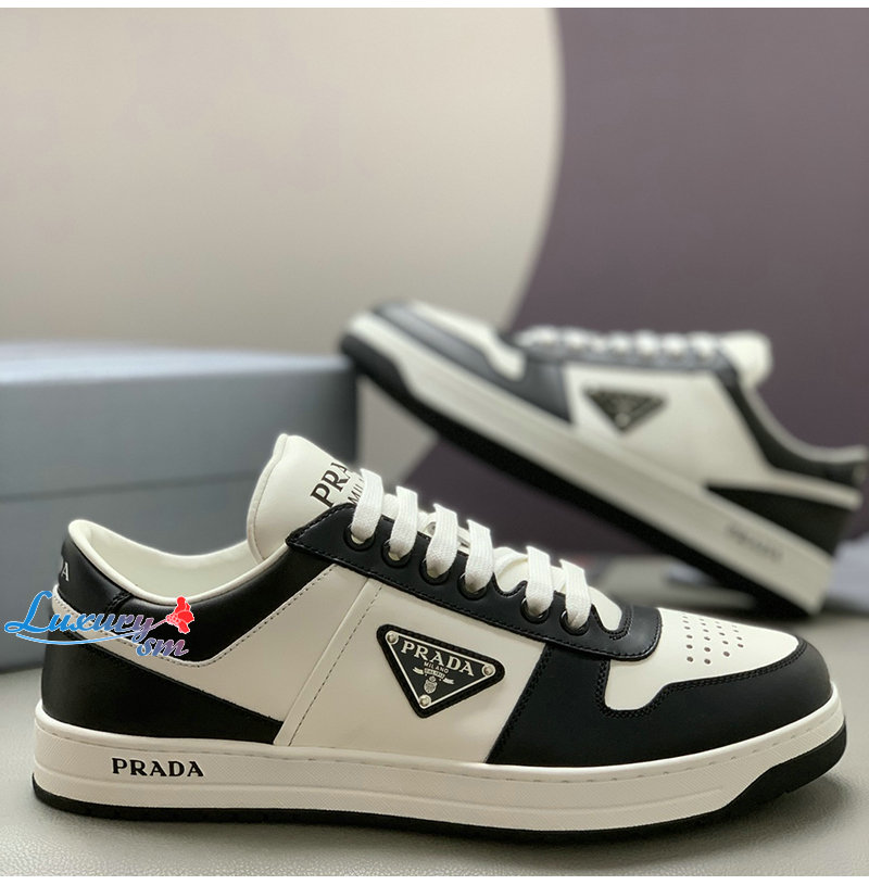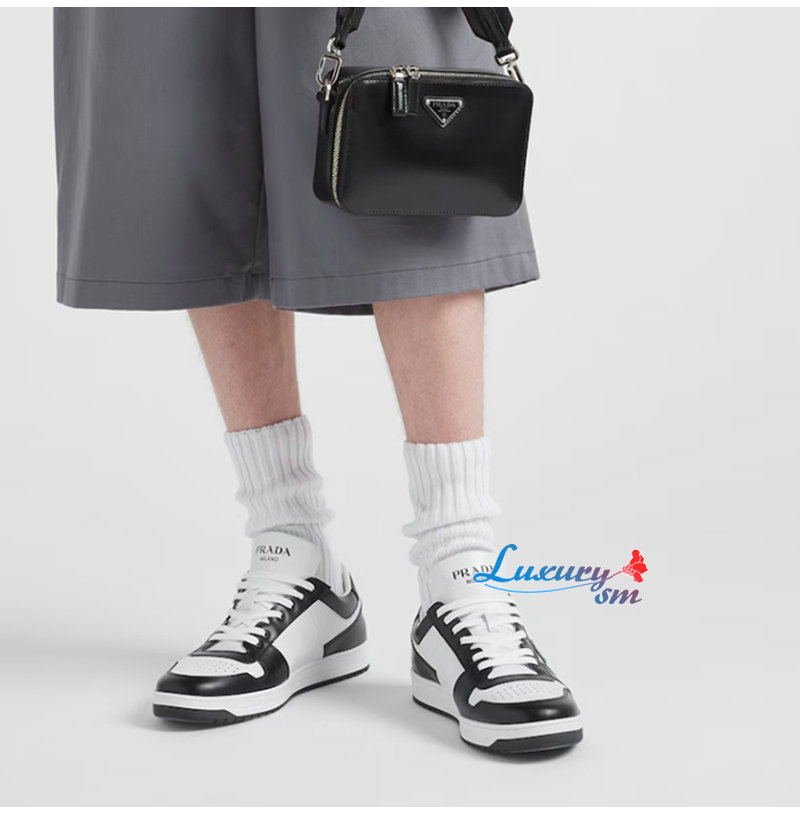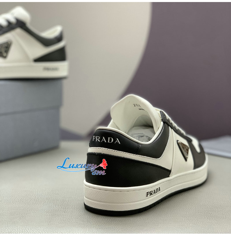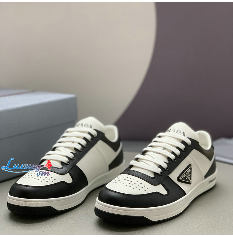PRADA-2EE364 프라다 화이트/블랙 다운타운 나파 가죽 스니커즈 남성용