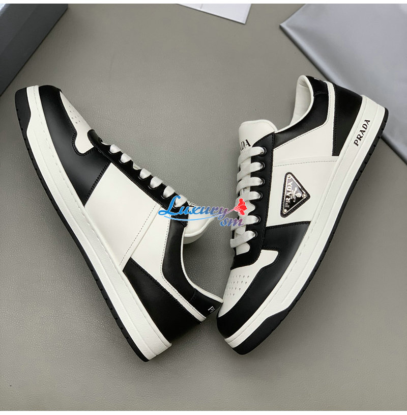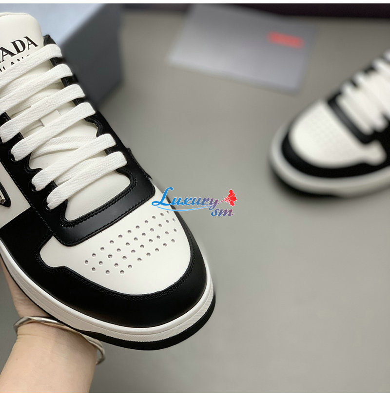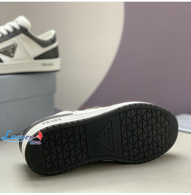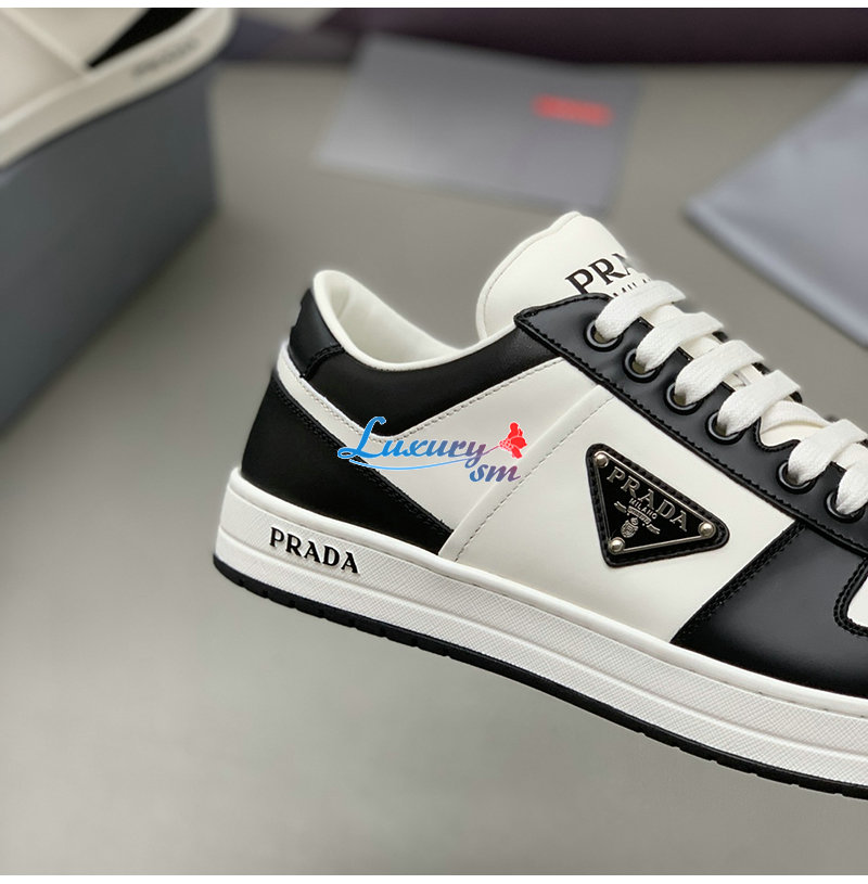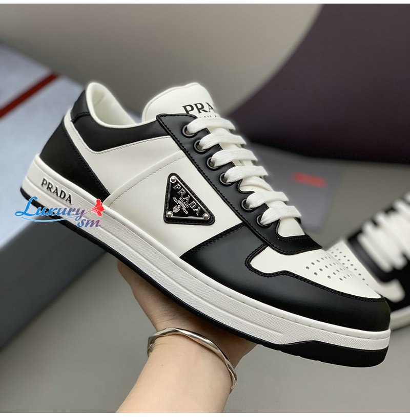 PRADA-2EE364 프라다 화이트/블랙 다운타운 나파 가죽 스니커즈 남성용