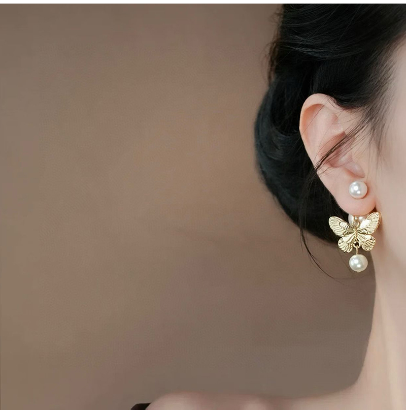 나비 리본 진주 귀걸이는 빈티지 궁전 스타일로 부드럽고
