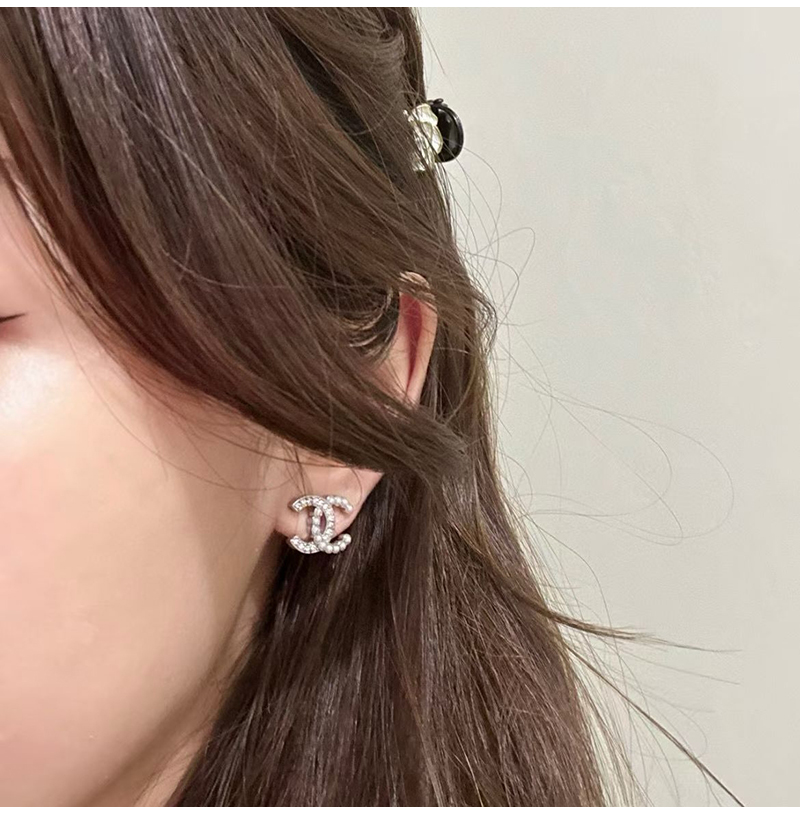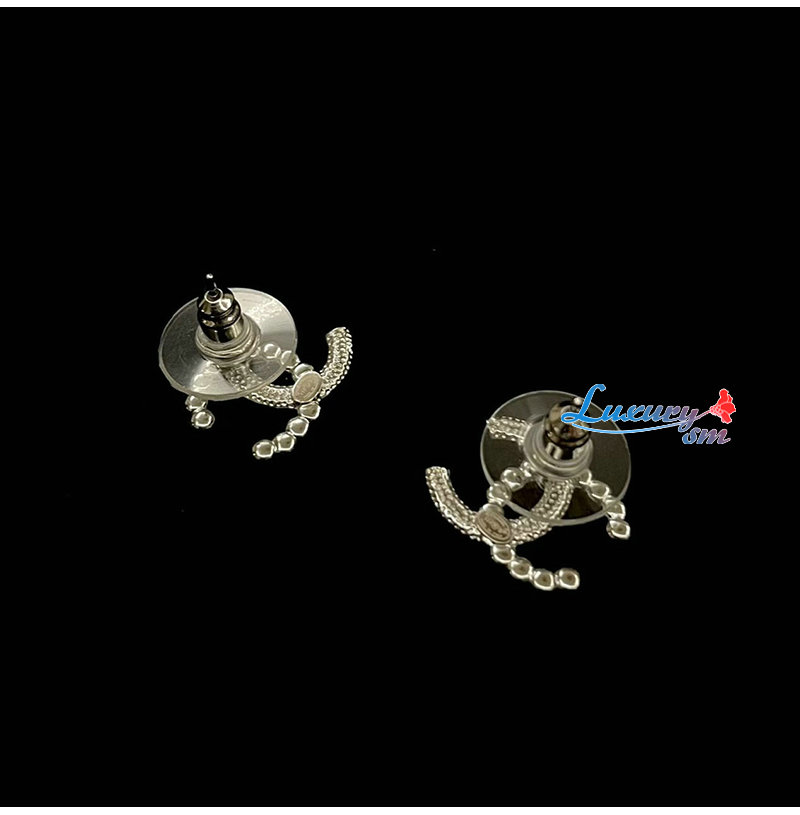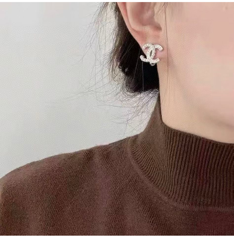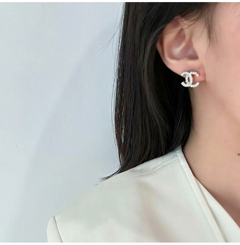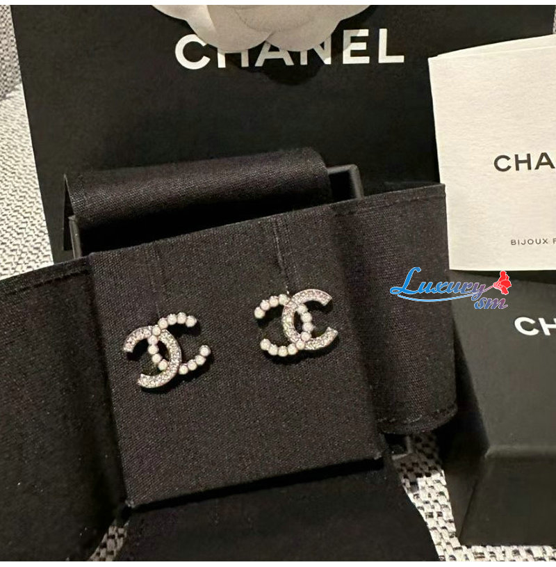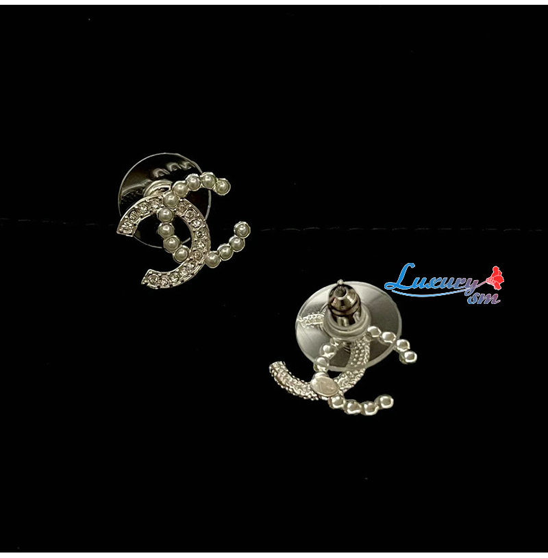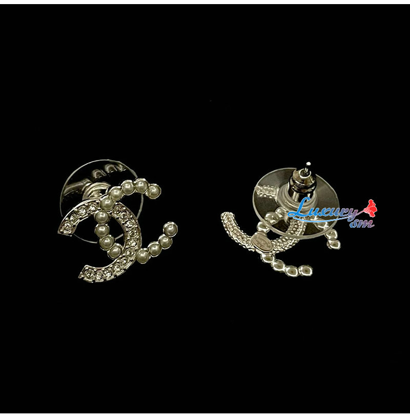 CHANEL-7411 샤넬 스타일 더블 C 하프 펄 앤 하프 큐빅 귀걸이
