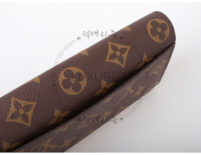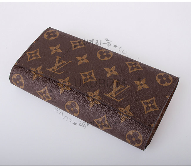 엔벨로프 스타일의 사라 월릿은 모노그램 캔버스 소재의 우아한 외관과 실용적인 내부 구조가 특징으로 다수의 포켓과 신용카드 수납칸이 포함되어 있습니다.