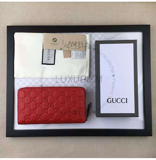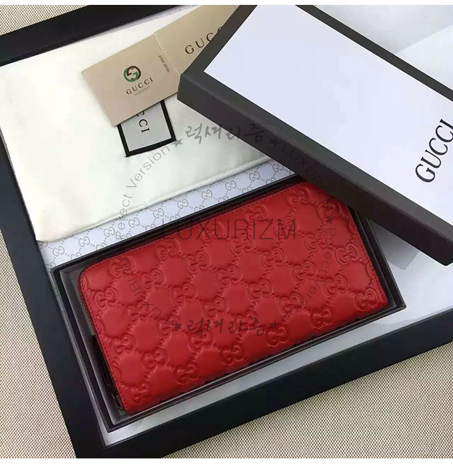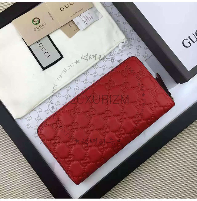 GUCCI-410102 6433 구찌 Linea A 시그니처 가죽 지퍼 장지갑 레드
