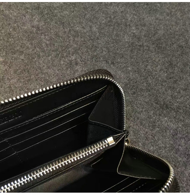 같은 계열 색상의 스티치 디테일과 스모크 체크가 돋보이는 지퍼라운드 지갑