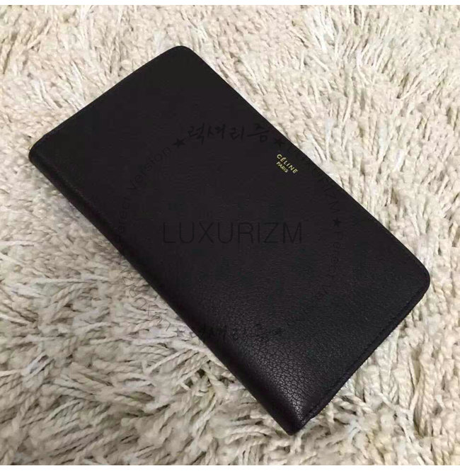 CELINE-105003 셀린느 라지 지퍼 카프스킨 라운드 블랙 장지갑 여성용