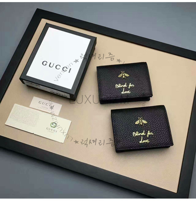[스페셜오더]GUCCI-460185 1000 구찌 Animalier 카드 케이스 블랙