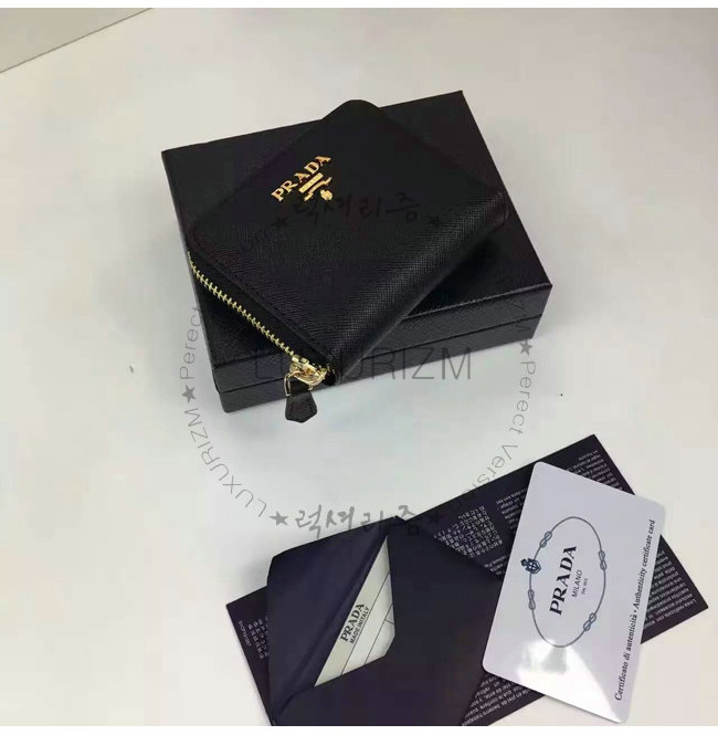 PRADA-1MM268 프라다 사피아노 메탈릭 골드 가죽 동전 지갑 블랙