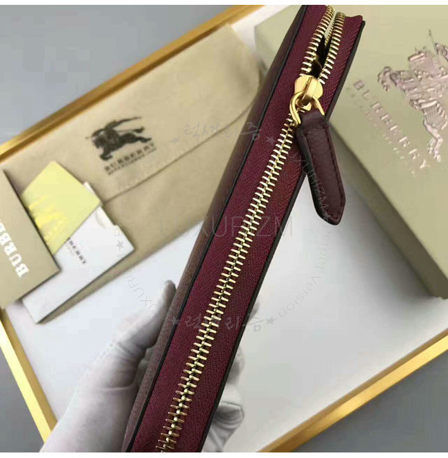 [스페셜오더]BURBERRY-40397501 버버리 하우스 체크 그레이니 가죽 지퍼 라운드 지갑 와인