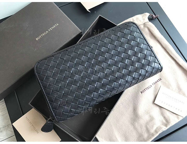 [스페셜오더]BOTTEGA VENETA-114076 보테가 베네타 블랙 인트레치아토 나파 짚 어라운드 지갑