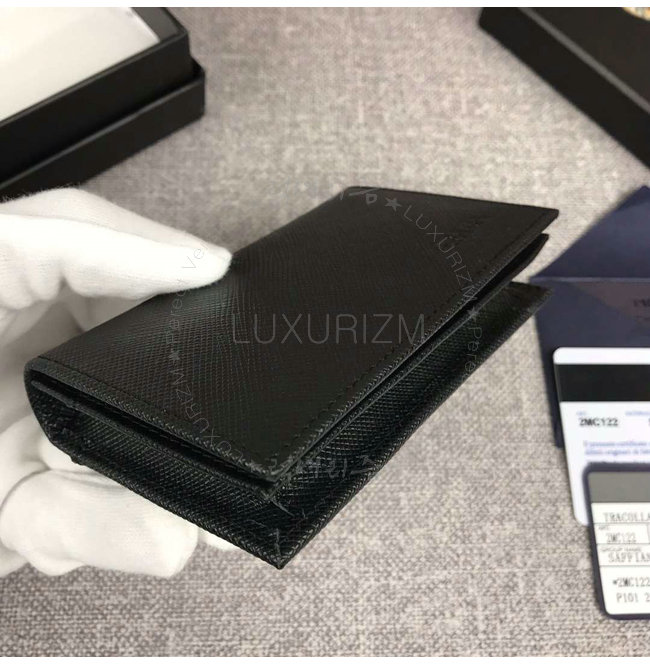[스페셜오더]PRADA-2MC122 프라다 사피아노 가죽 엠보싱 로고 블랙 카드 지갑