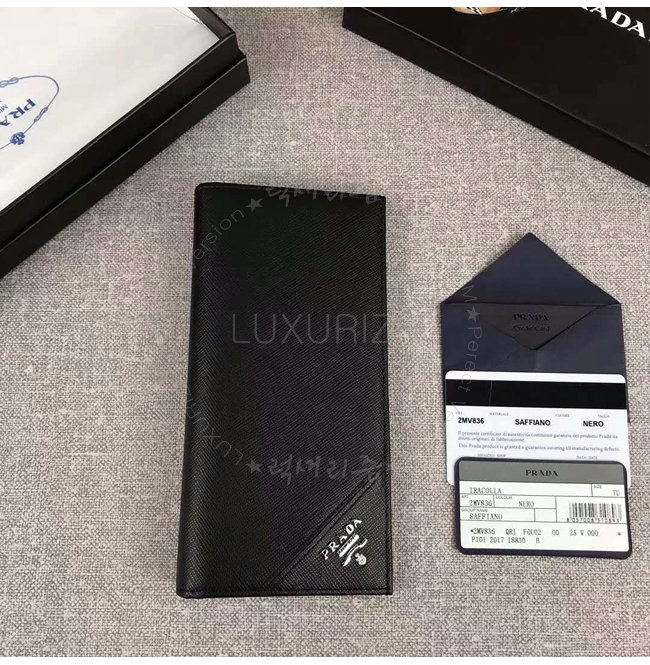 [스페셜오더]PRADA-2MV836 프라다 사피아노 가죽 메탈 로고 블랙 장지갑