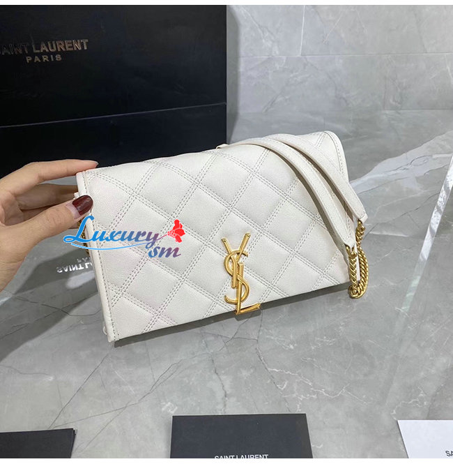 [스페셜오더]SAINT LAURENT-585031 생 로랑 화이트 다이아몬드 퀼티드 램스킨 베키 체인 월릿