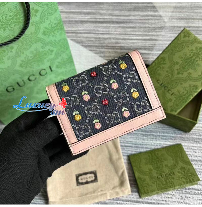 [스페셜오더]GUCCI-523155 8911 구찌 오피디아 핑크/블루 GG 데님 카드 케이스 지갑