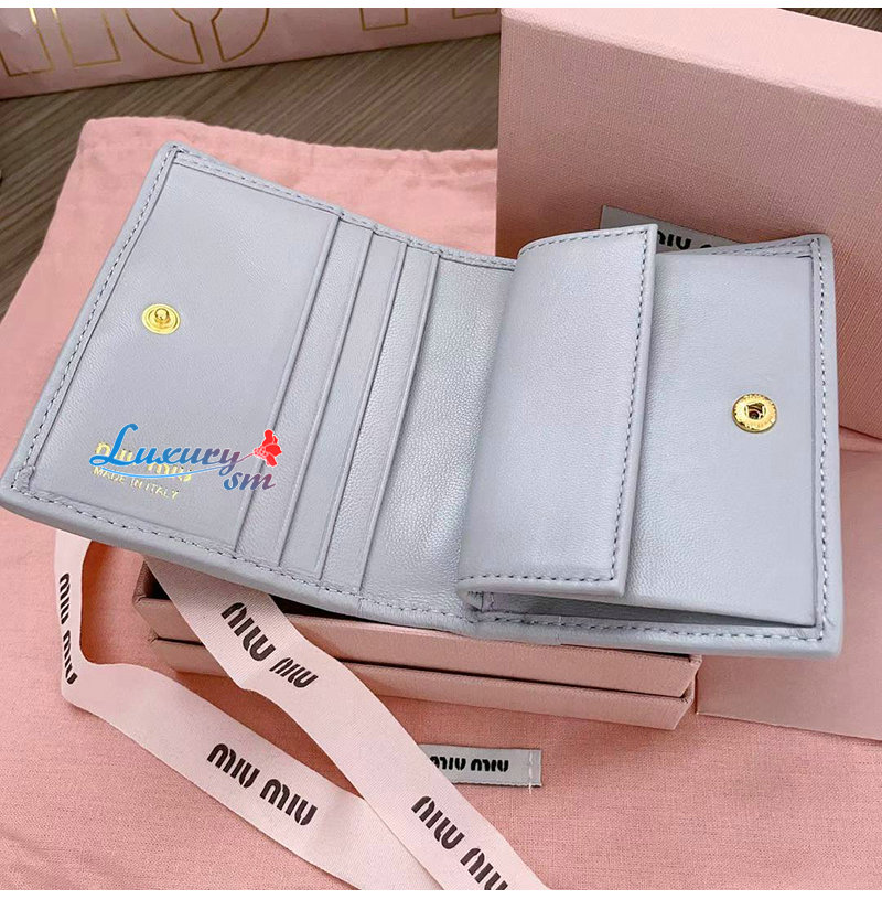 [스페셜오더]MIUMIU-5MV204 미우미우 펄 그레이 마테라쎄 나파 가죽 반지갑