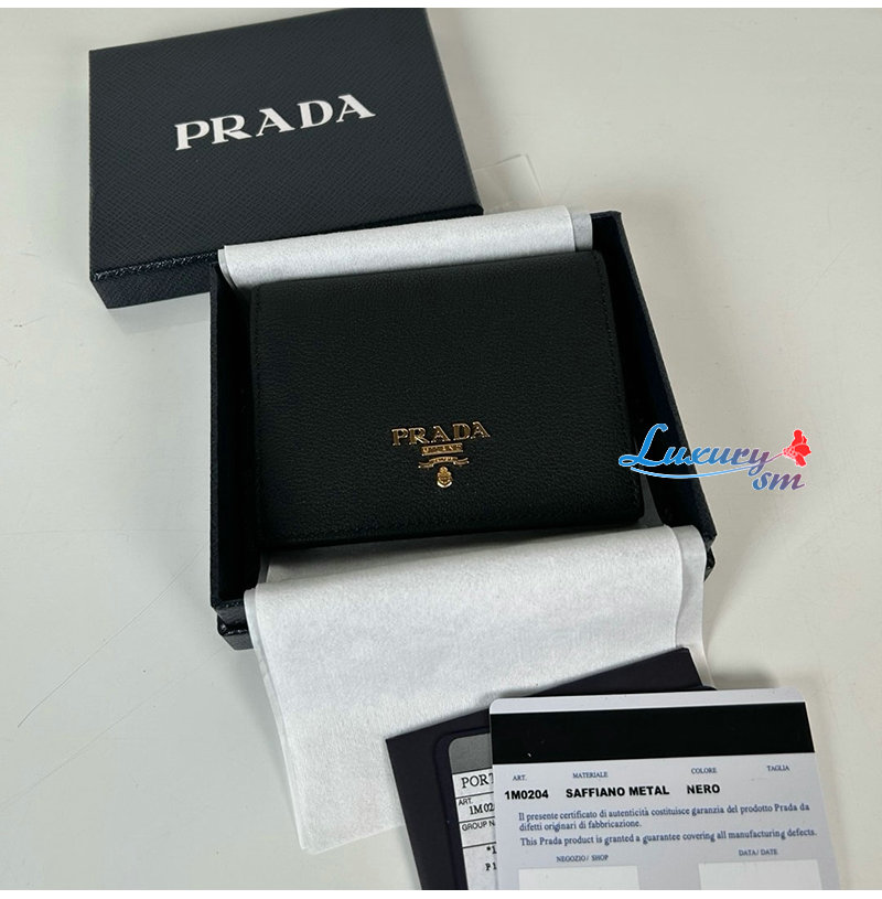 [스페셜오더]PRADA-1M0204 프라다 송아지가죽 메탈 로고 카드 지갑 블랙
