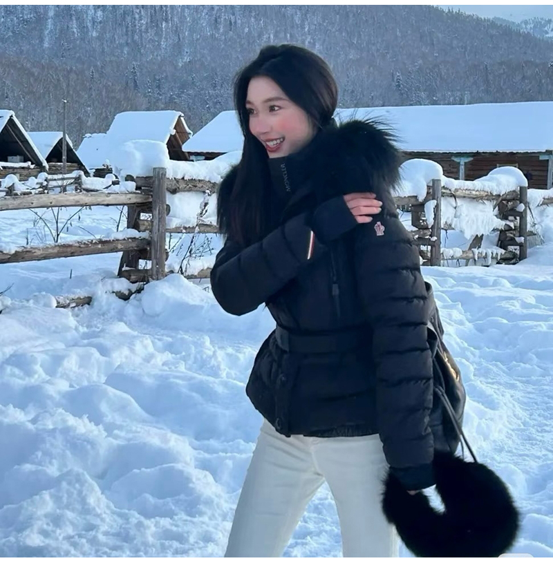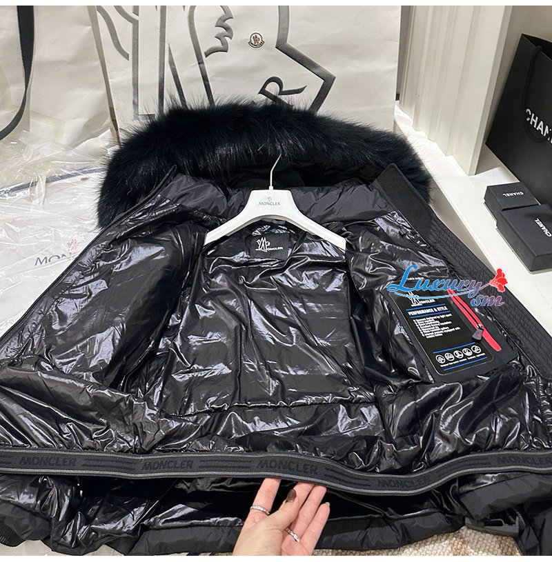 MONCLER-A000665399E 몽클레어 Beverley 베벌리 후드 시어링 트리밍 스키 다운 재킷 블랙 여성용