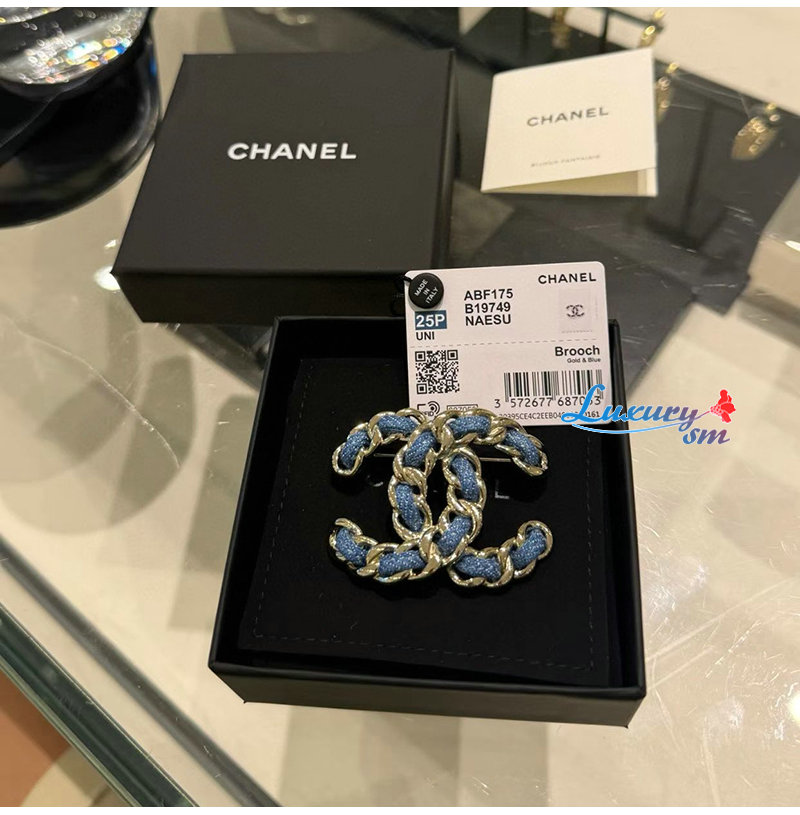 CHANEL-7655 샤넬 25 청데님 CC 메탈 브로치