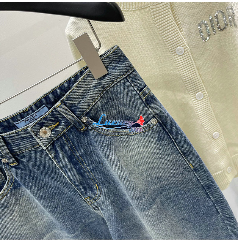PRADA-12313 프라다 블루 스터드 장식 트라이앵글 로고 청바지 여성용