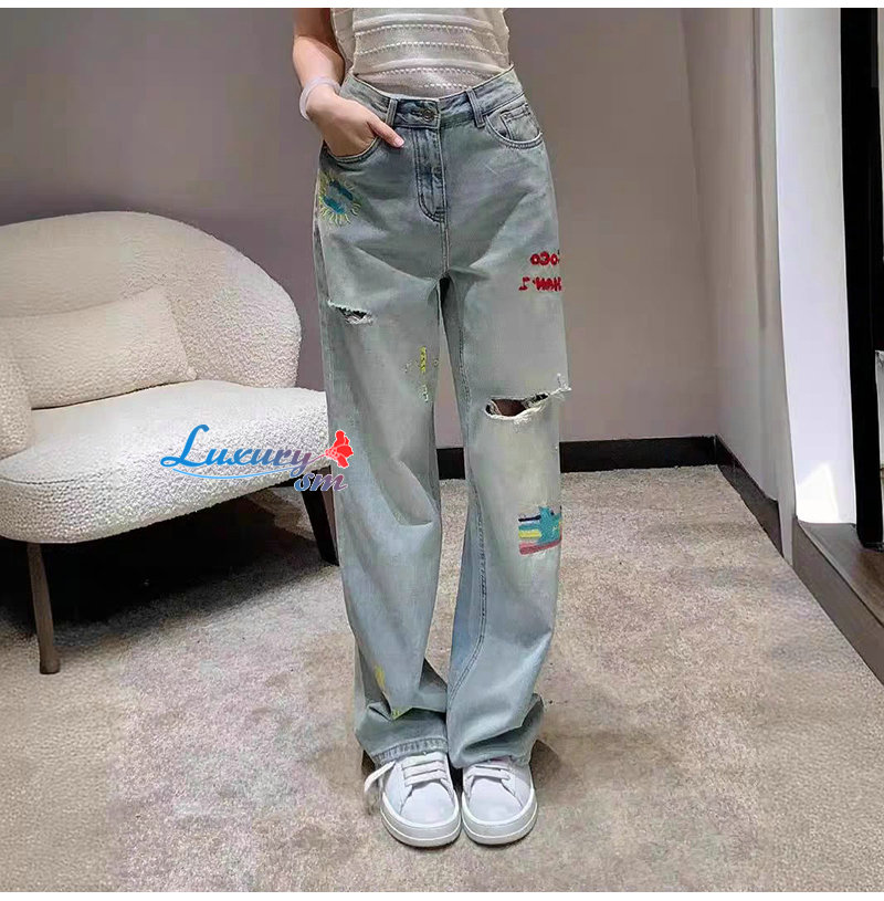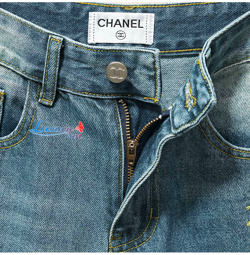 CHANEL-061210 샤넬 블루 아플리케 장식 청바지 여성용