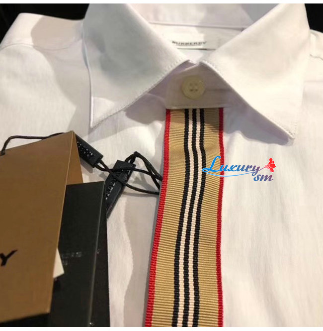 BURBERRY-80154361 버버리 화이트 아이콘 스트라이프 디테일 스트레치 코튼 포플린 셔츠
