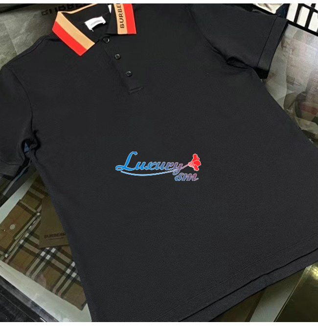 BURBERRY-80392651 버버리 블랙 로고 디테일 코튼 피케 폴로셔츠