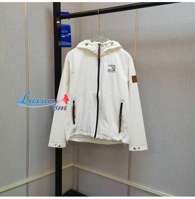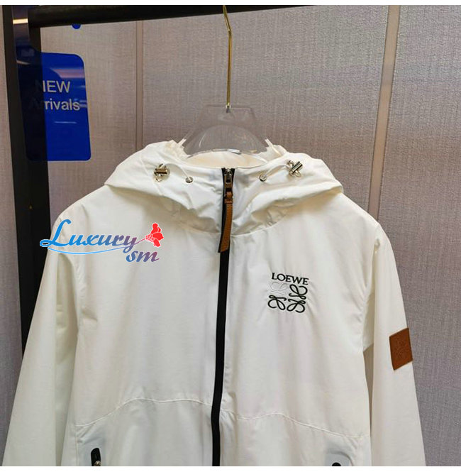 LOEWE-07218 로에베 화이트 나일론 로고 아플리케 장식 바람막이 후드 쟈켓 남성용