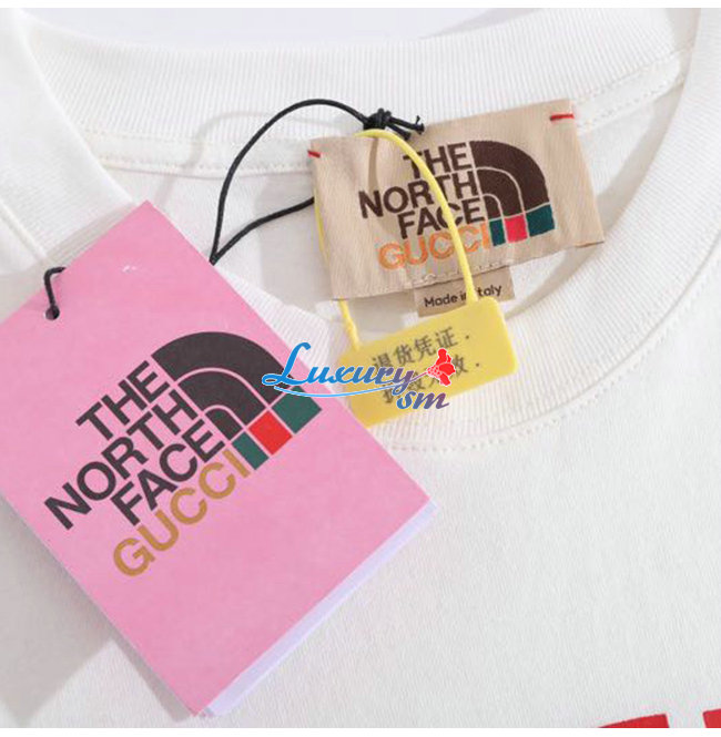 GUCC*-02229 구찌 화이트 구찌 X 노스페이스 콜라보 프린트 장식 티셔츠 남여공용