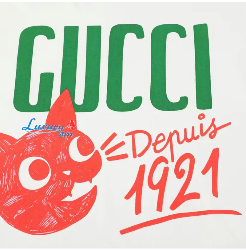 GUCCI-05171 구찌 화이트/그린 프린트 장식 티셔츠 남여공용