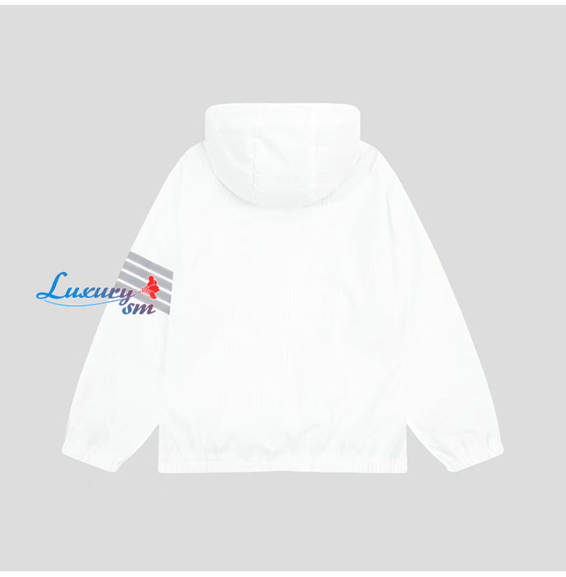 THOM BROWNE-08292 톰 브라운 화이트 스트라이프 장식 바람막이 후드 재킷 남성용