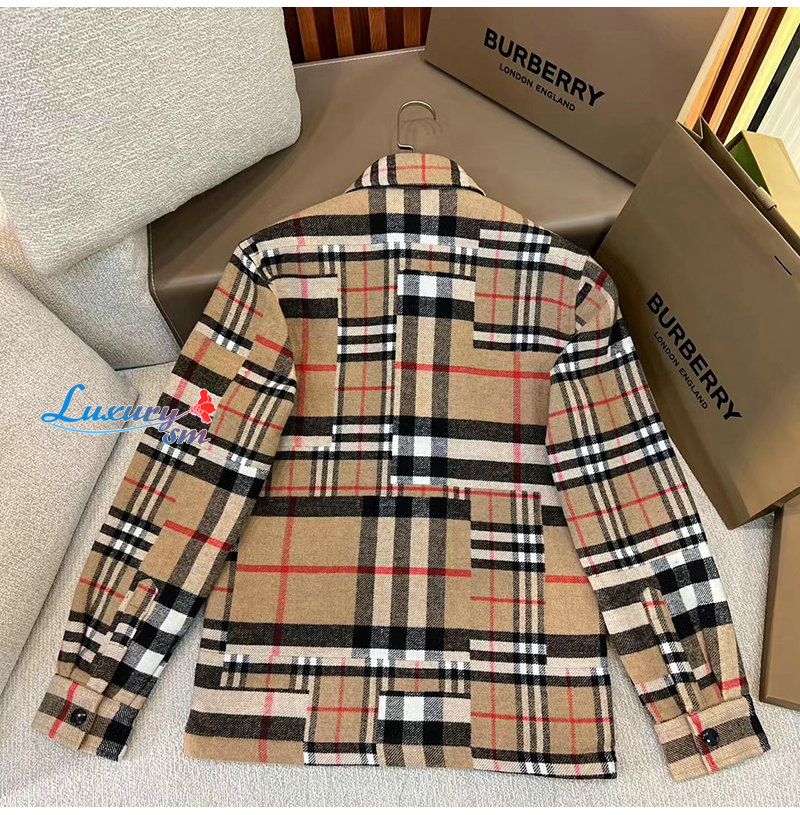 BURBERRY-10055 버버리 베이지 체크 무늬 울 셔츠 남여공용