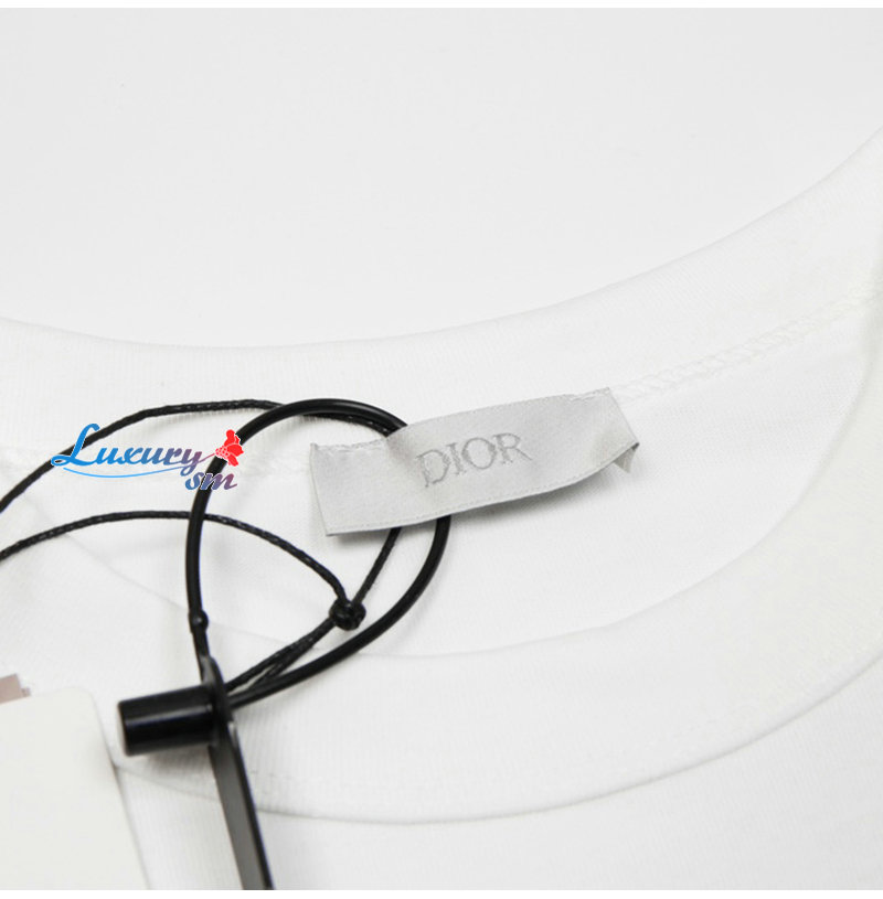 DIOR-04295 디올 화이트 DIOR 아플리케 장식 티셔츠 남여공용