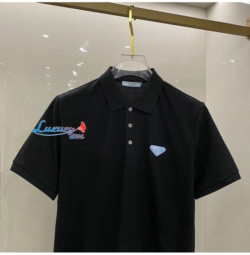 PRADA-05059 프라다 블랙 트라이앵글 로고 폴로 티셔츠 남성용